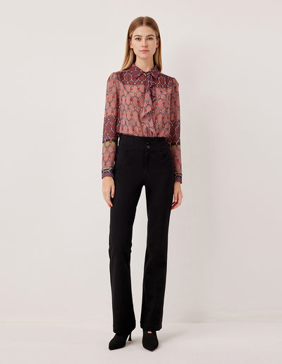 MARYLING Commuter Black Slim Fit Wide Leg Straight Trousers