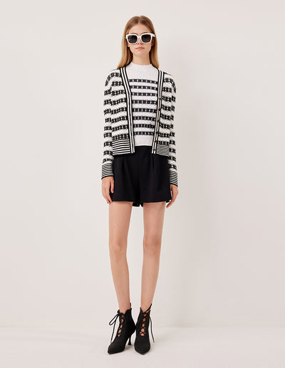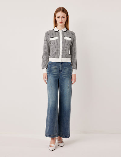 MARYLING Blue & White Trimmed Wool Knit Cardigan