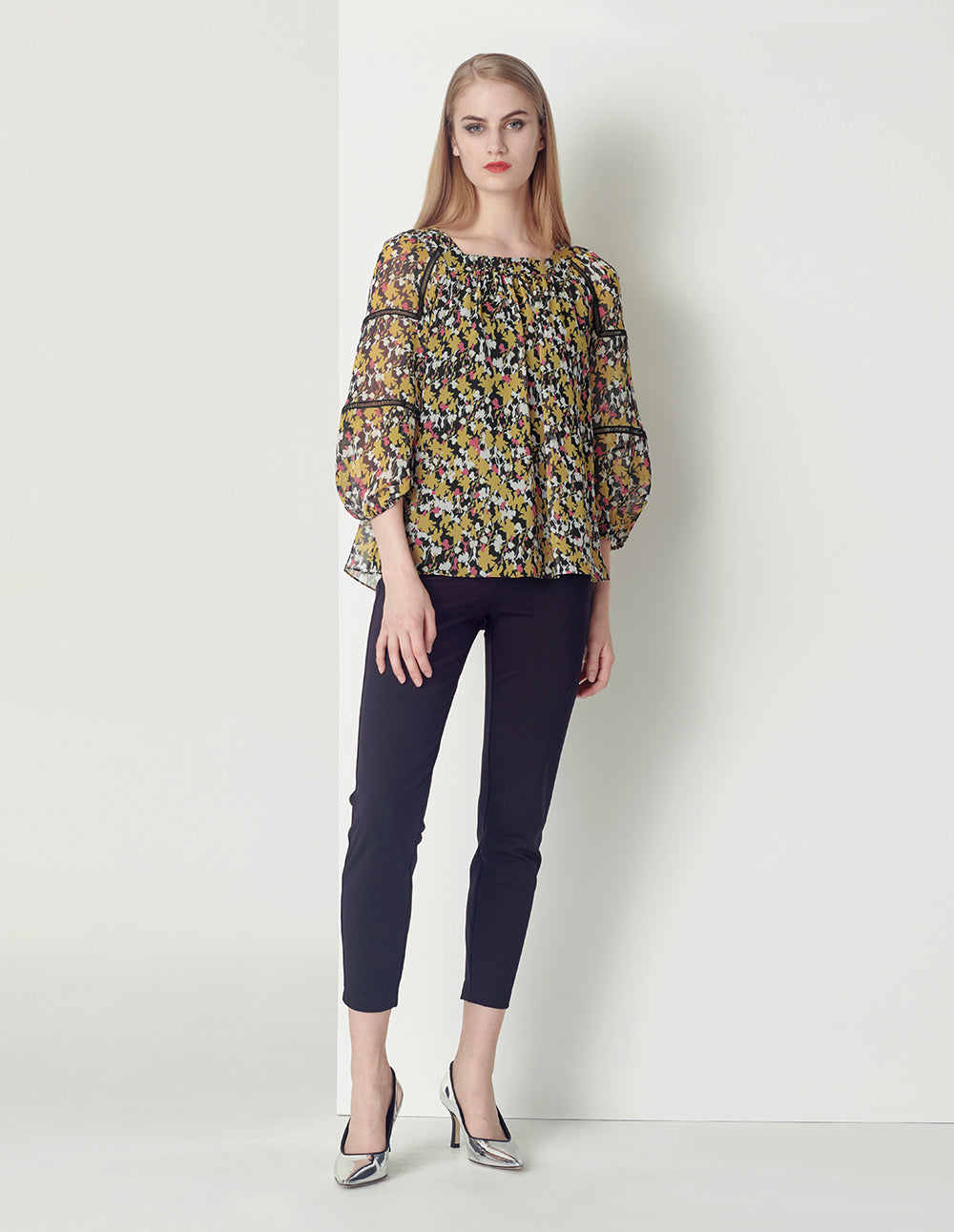 MARYLING Square Collar Puffed Sleeves Print Top