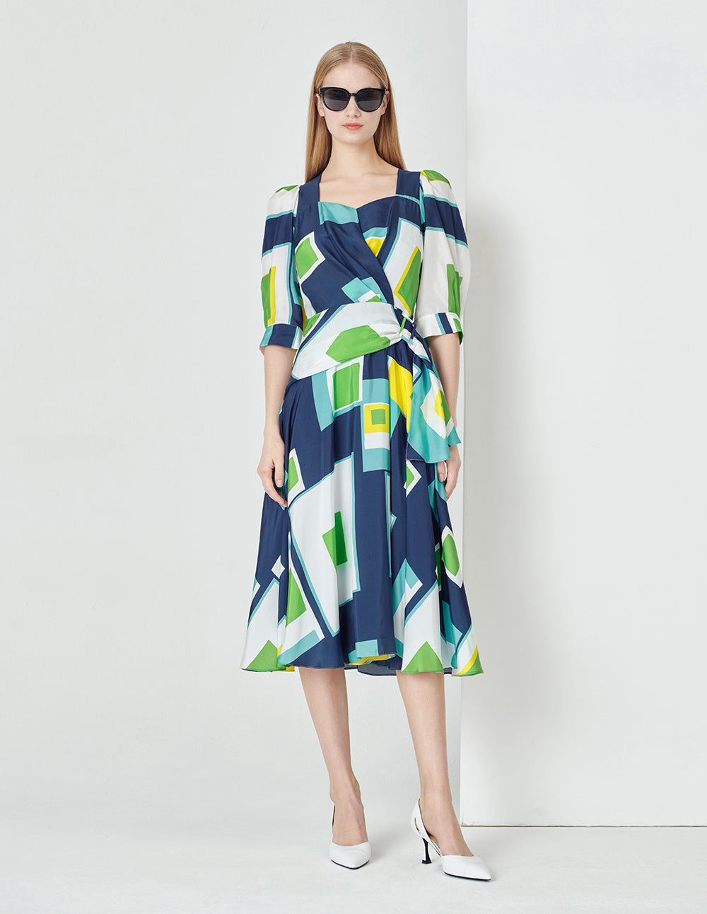 MARYLING Colour Holiday Puzzle Art Block Print Dress