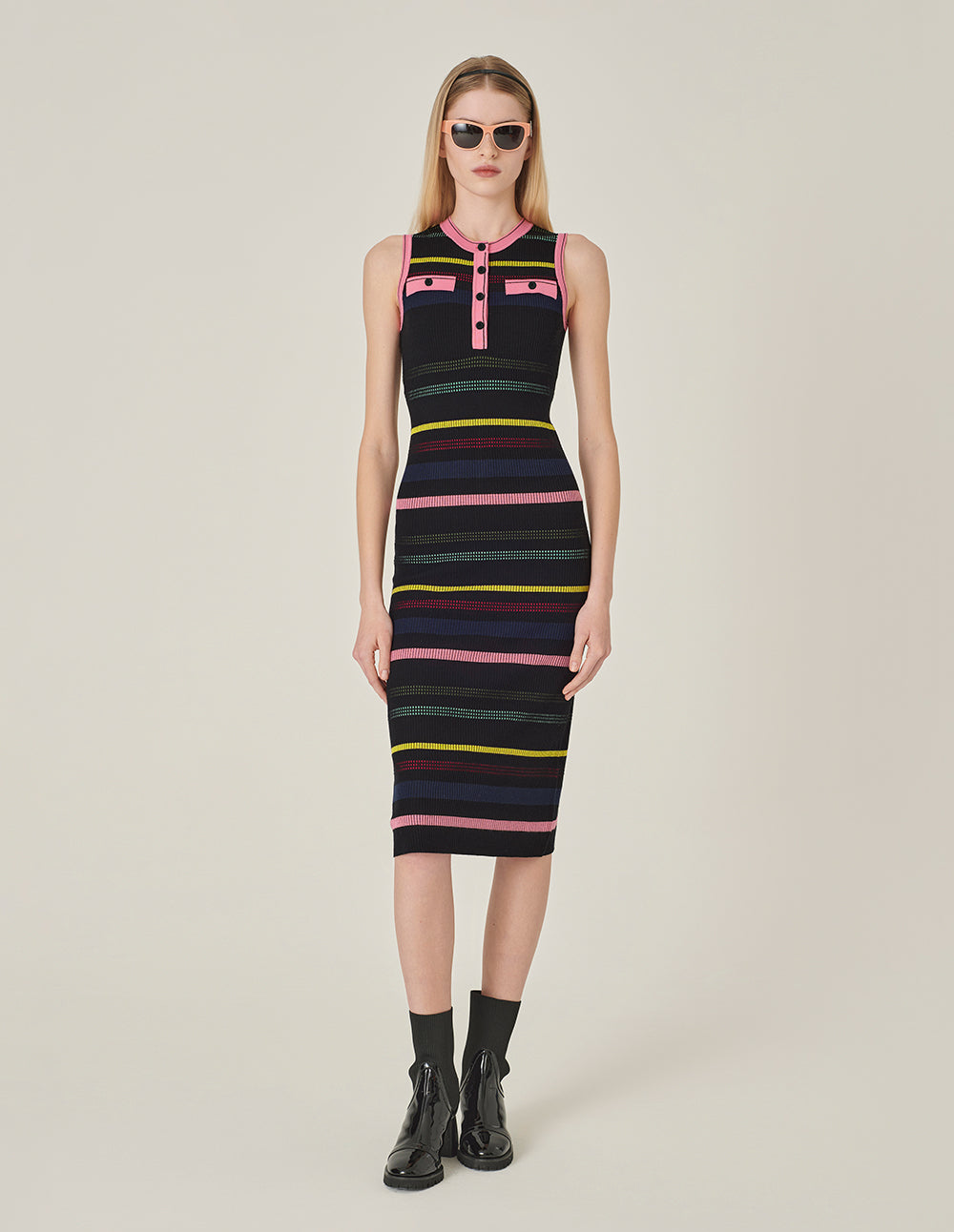 MARYLING Round Neck Sleeveless Colorful Striped Knitted Dress