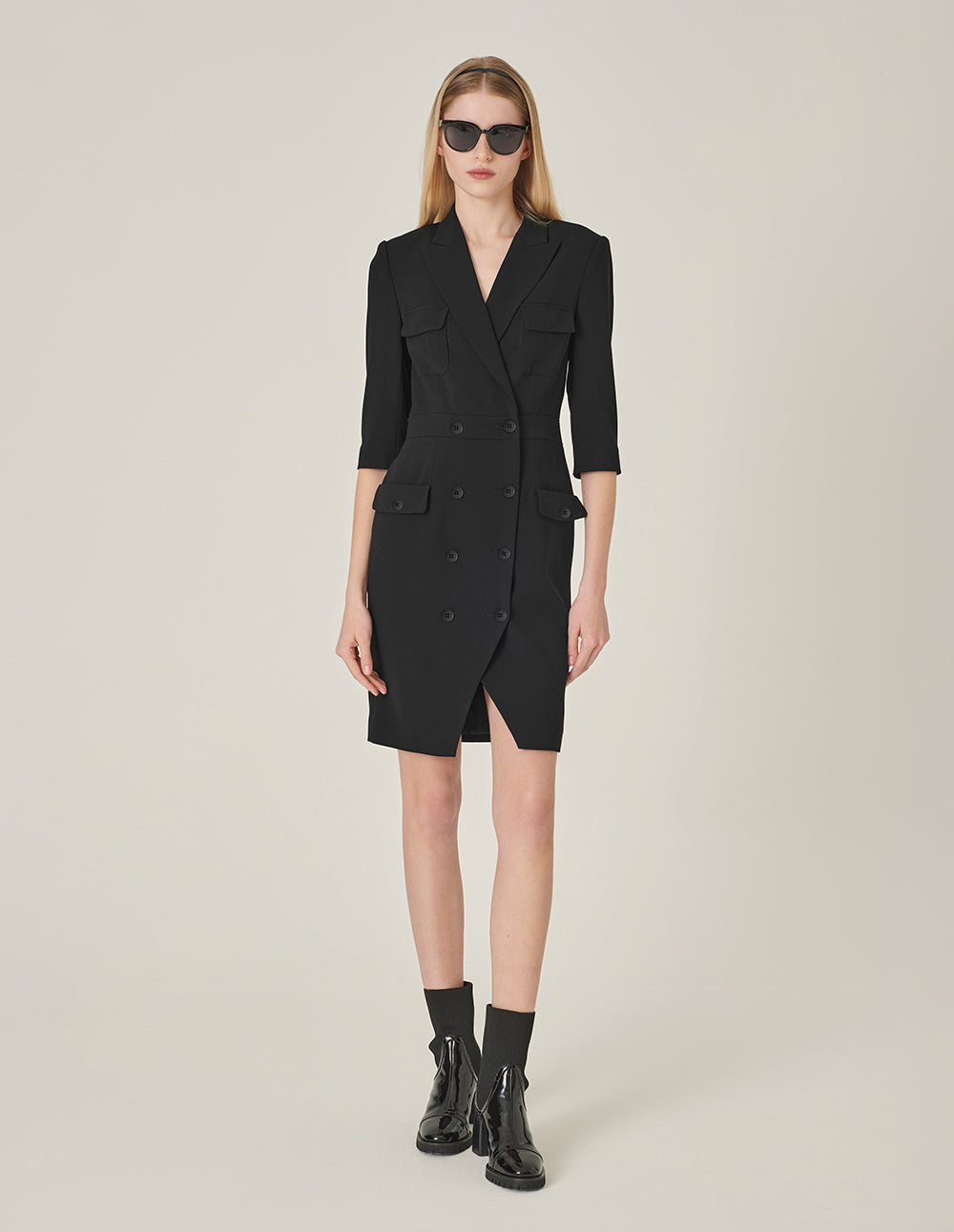 MARYLING Black Lapel Double-Breasted Suit Dress