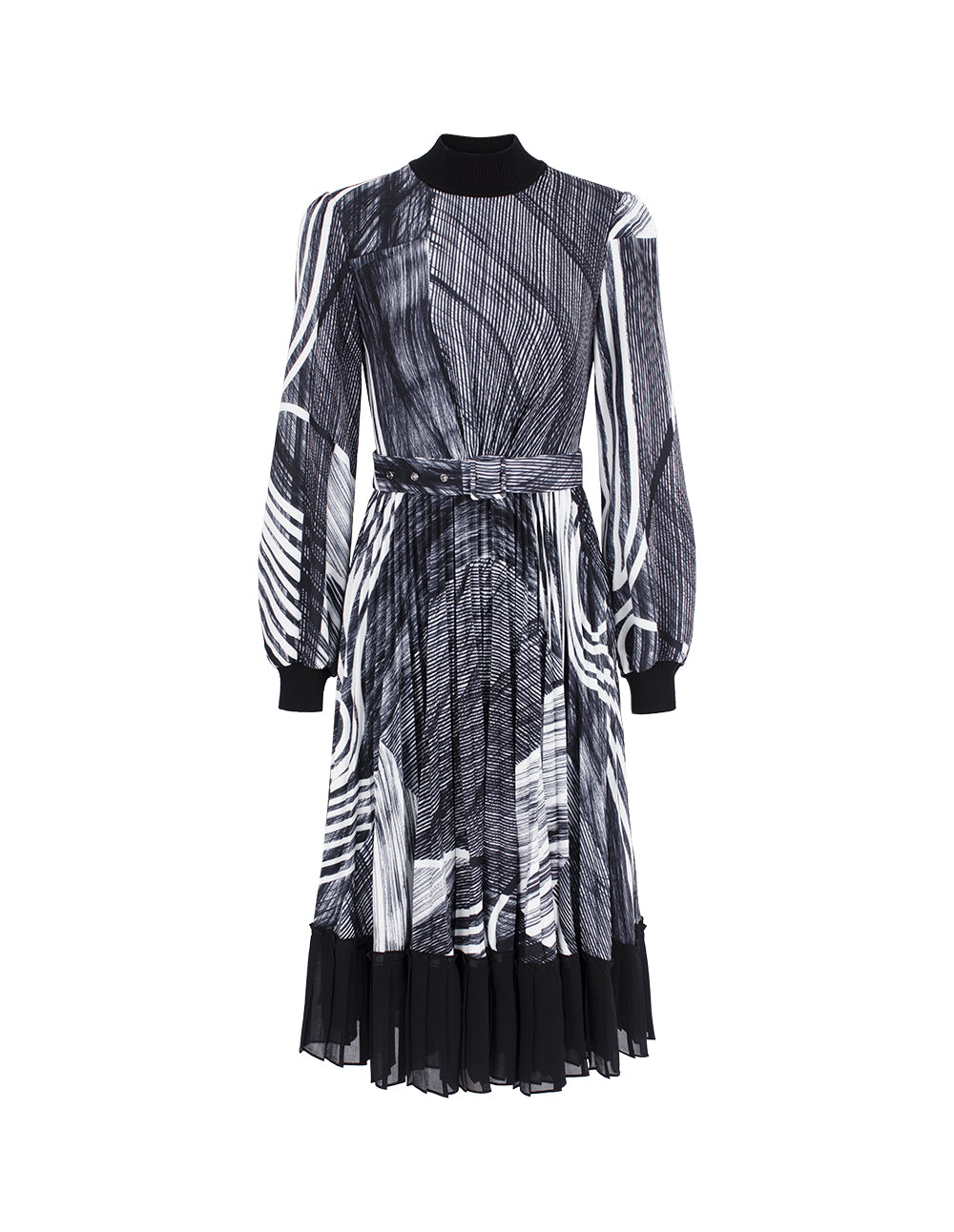 MARYLING Knitted Turtleneck Printed A-Line Pleated Midi Dress