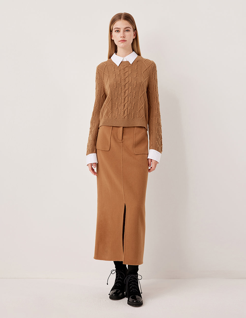 MARYLING Cable Knit Ribbed A-Line Hem Sweater