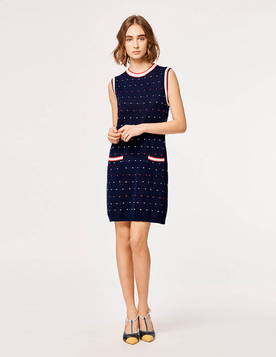 MARYLING CREW NECK SLEEVELESS CHECK KNITTED DRESS