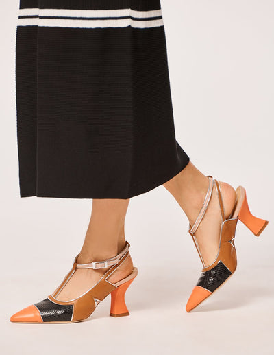 MARYLING Patent Leather Open Toe Lace Up Block Heel Slingback Shoes