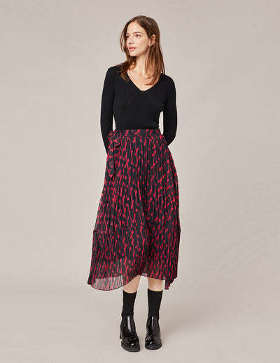 MARYLING BLACK & RED HOUNDSTOOTH KNITTED SKIRT