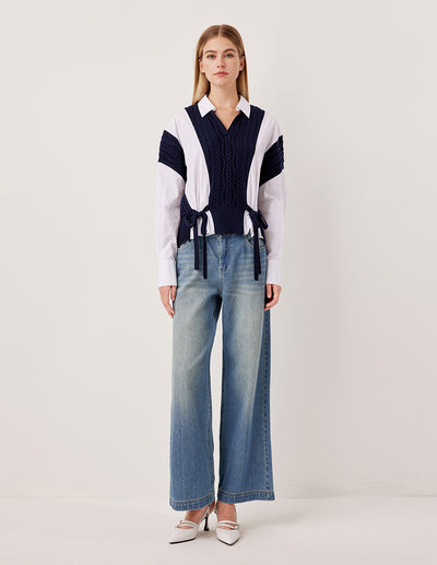 MARYLING Blue Asymmetric Washed Denim Jeans