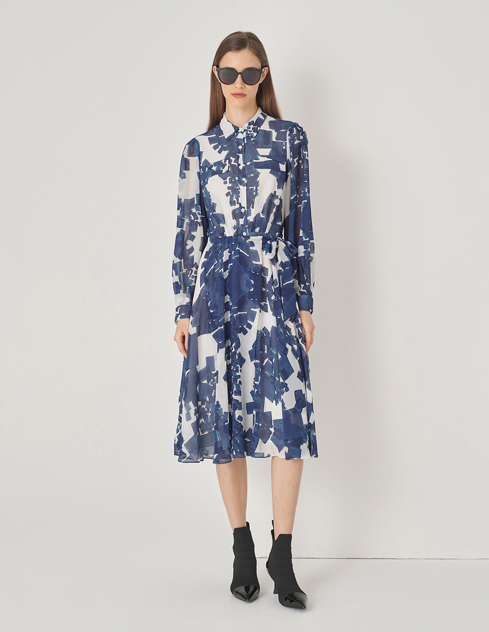 MARYLING Asymmetric Paisley Print Belted Pleated Midi Shirt Dress