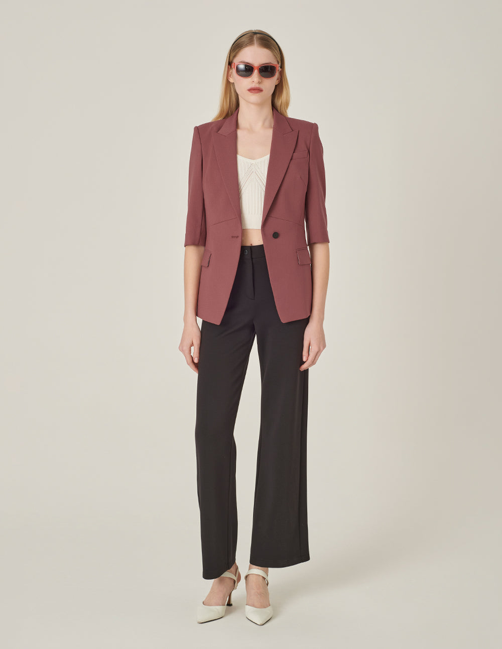 MARYLING's peak‑lapel single‑breasted blazer, tailored in a slim fit, offers sharp, modern polish. Designed in the brand’s signature silhouette, it flatters the figure with refined structure. Rendered in a sophisticated brick‑red hue from the Maillard palette, it delivers instant warmth and elevated style.
