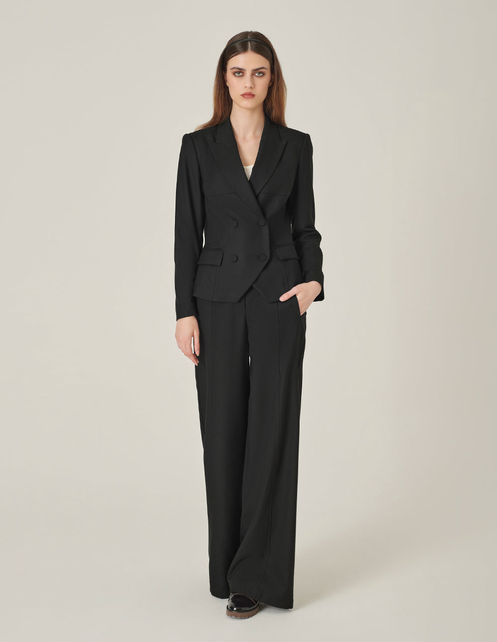 MARYLING Black Double-Breasted Faux Wool Blazer