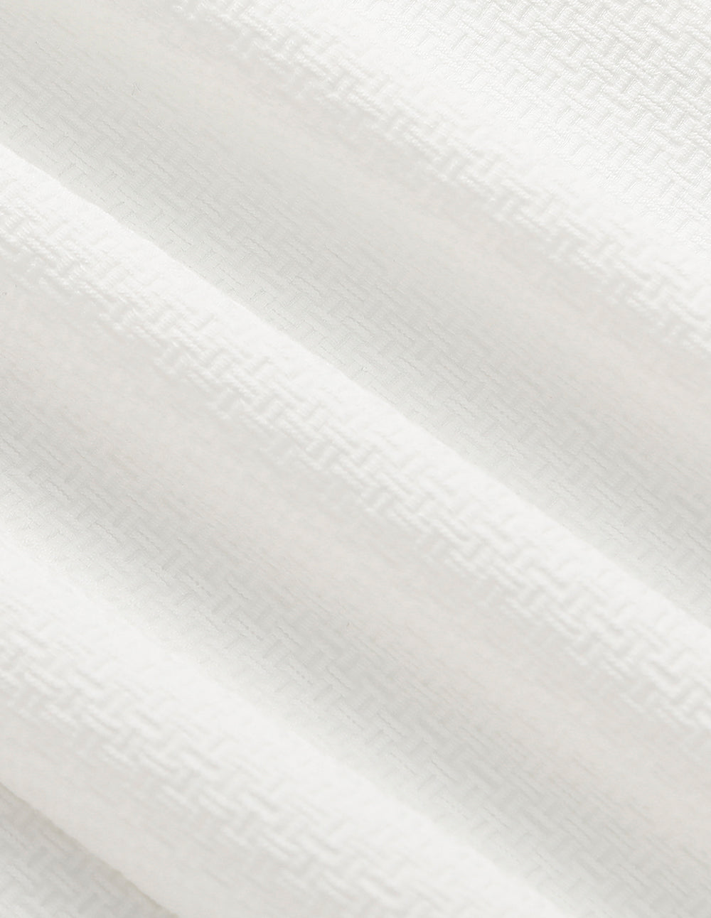 MARYLING’s coat is crafted in a clean, luminous white that radiates visual purity and elegance. Made from high-quality white tweed—substantial yet soft, with a delicate hand feel and natural elasticity—it balances warmth with refined texture. Meticulous detailing at the collar and cuffs highlights artisanal craftsmanship, while a cropped boxy silhouette and clean lines create a crisp, modern shape. This design retains classic sophistication while infusing it with a fresh, youthful energy.