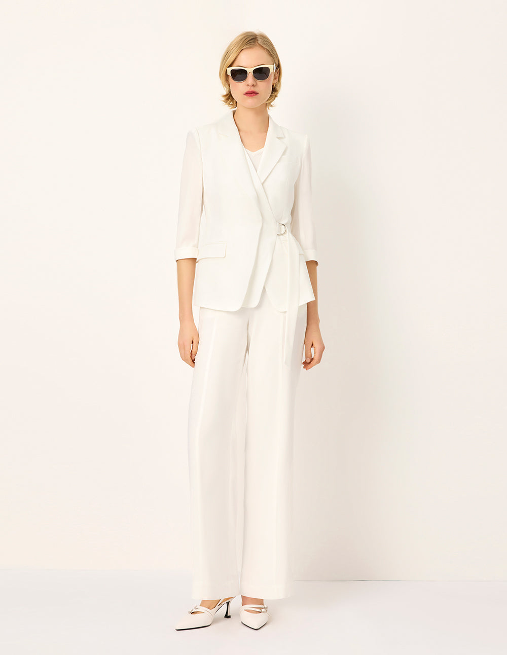 MARYLING Peaked Lapel 3/4 Sleeve Wrap Waist-Tie Blazer