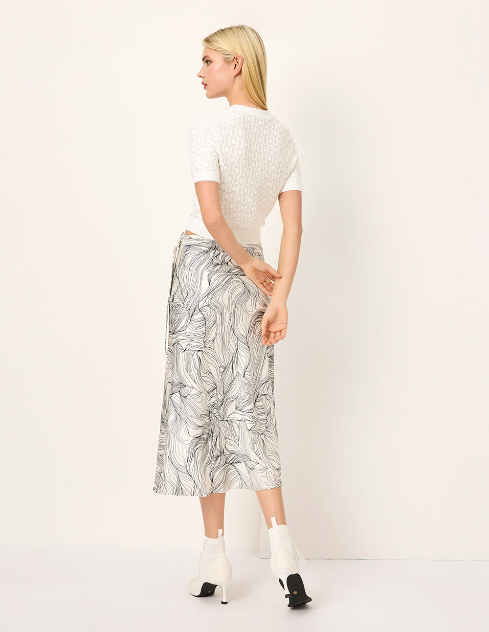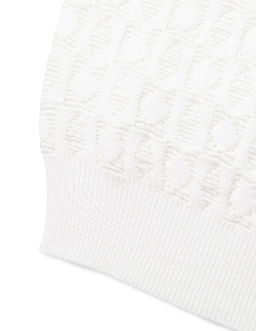 MARYLING's knitted top employs a unique technique that interweaves high‑elastic yarn with sheer silk. Without relying on bold colors, it plays with light and shadow on the fabric to create an air of ease and romance. A small round neck and short sleeves lend subtle refinement, while the slim fit follows the body's curves without constraint, exuding confident, composed elegance.