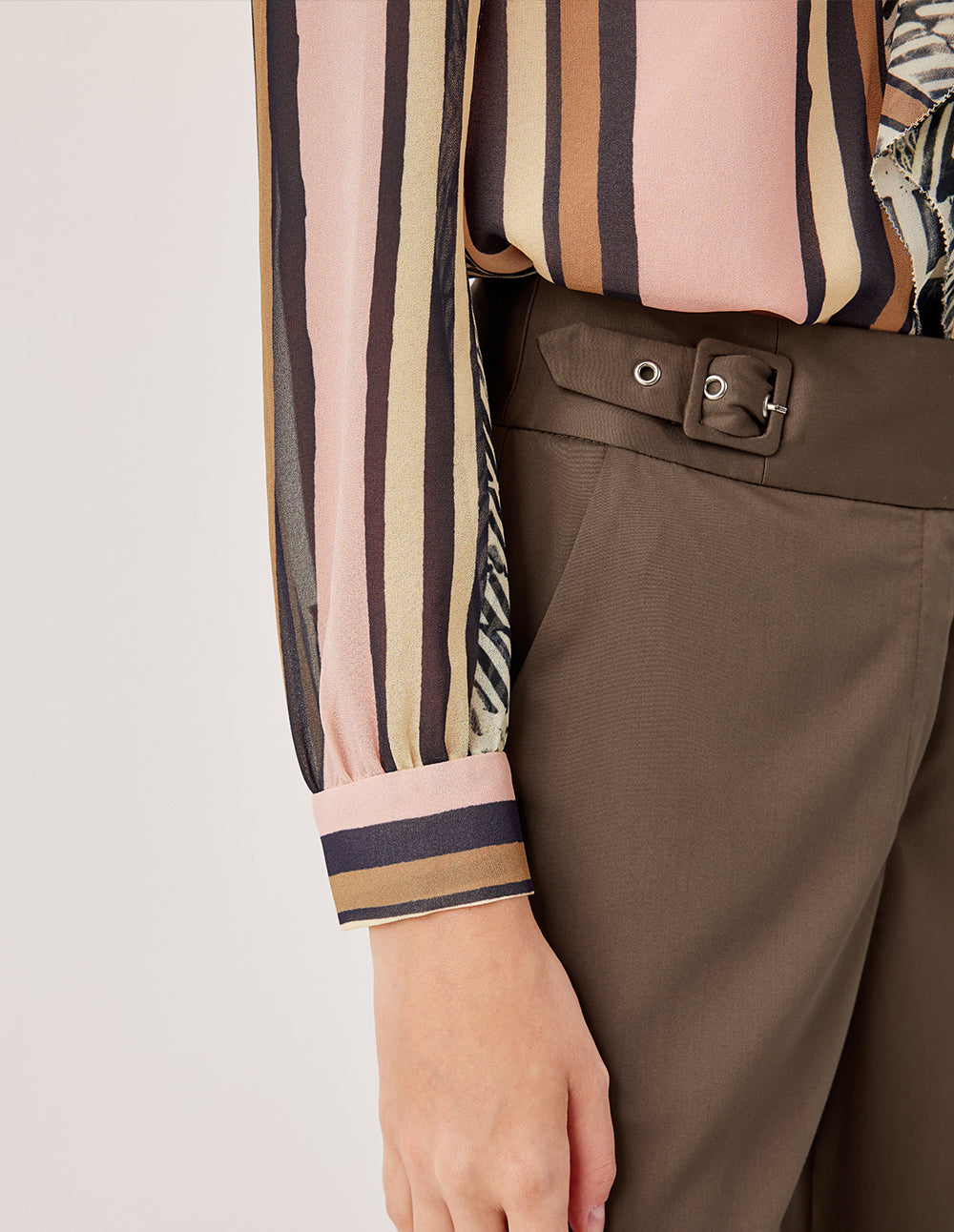 Wash separately to preserve pleats and fabric structure.