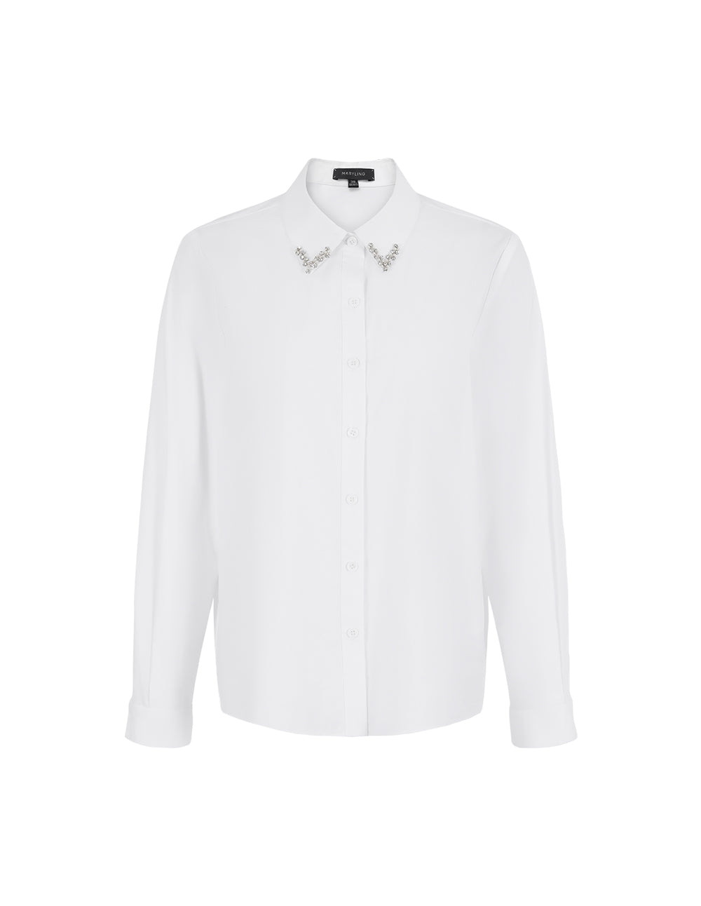 MARYLING Pearl Bead Collar Long Sleeve Cotton White Blouse