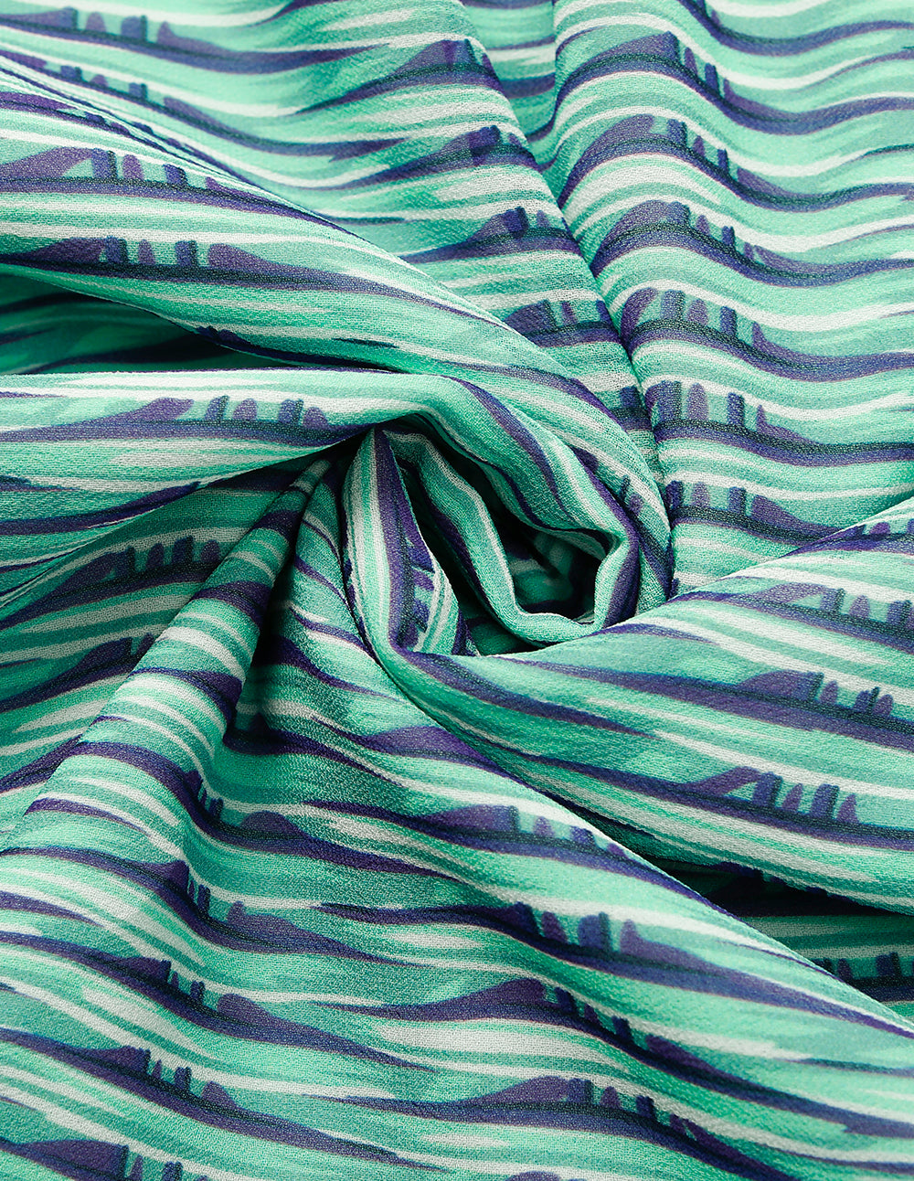 This dress is like wearing the Mediterranean summer. Two crisscross straps on the bodice mimic sea‑breezed waves, shaping an elegant V‑neck curve, while the skirt’s ruffles ripple with each step. The fabric captures the texture of hand‑woven cloth, flowing with a soft, rhythmic drape.