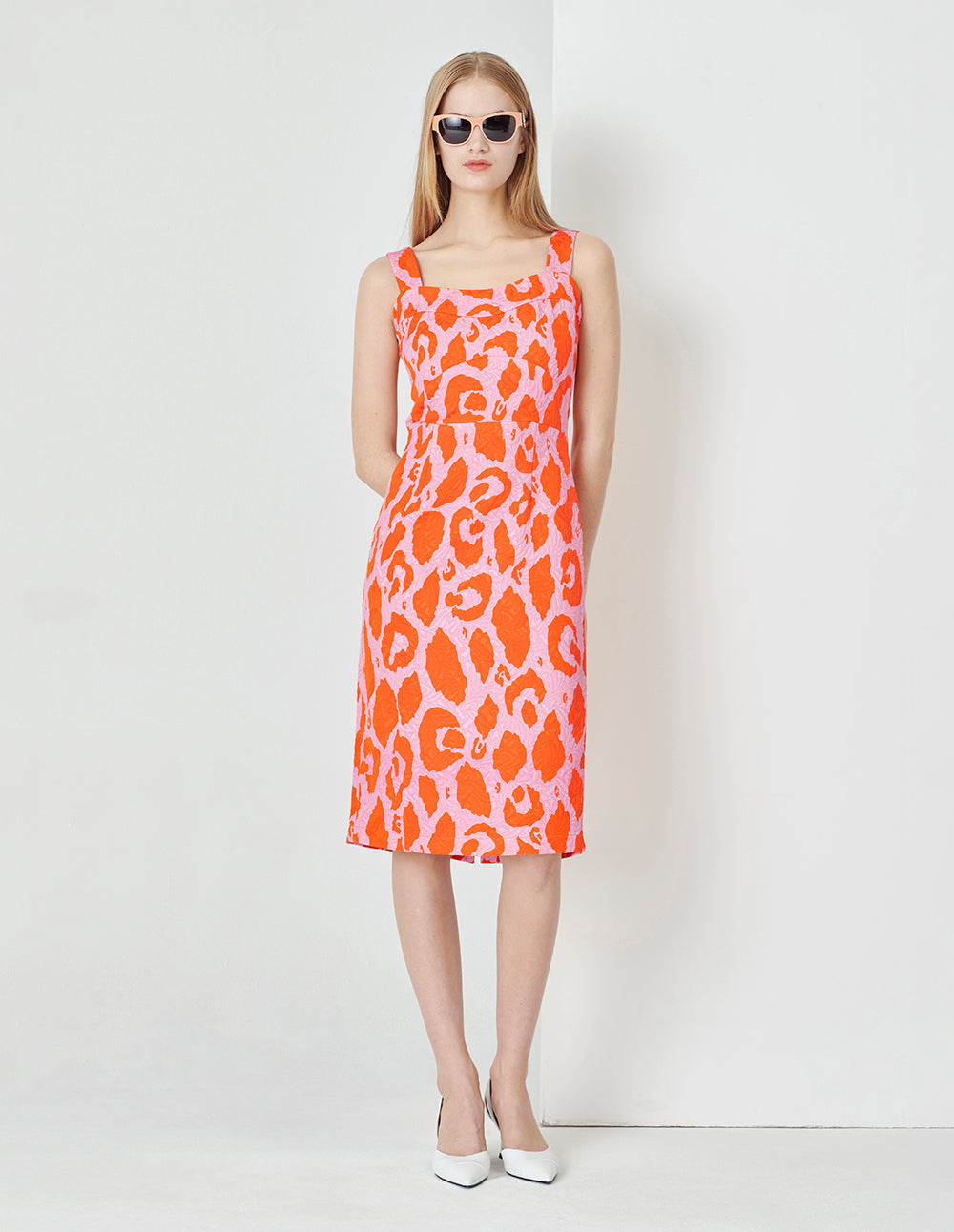 MARYLING Sling Straight Slit Jacquard Dress