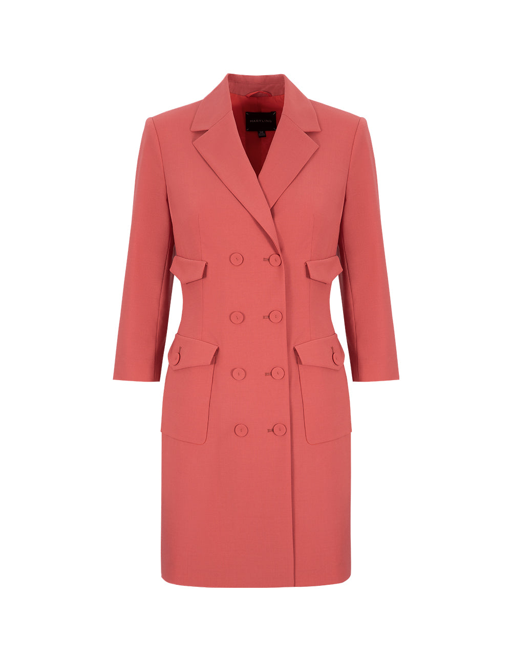 MARYLING Coral Blazer Collar Multi Pocket Long Sleeve Dress