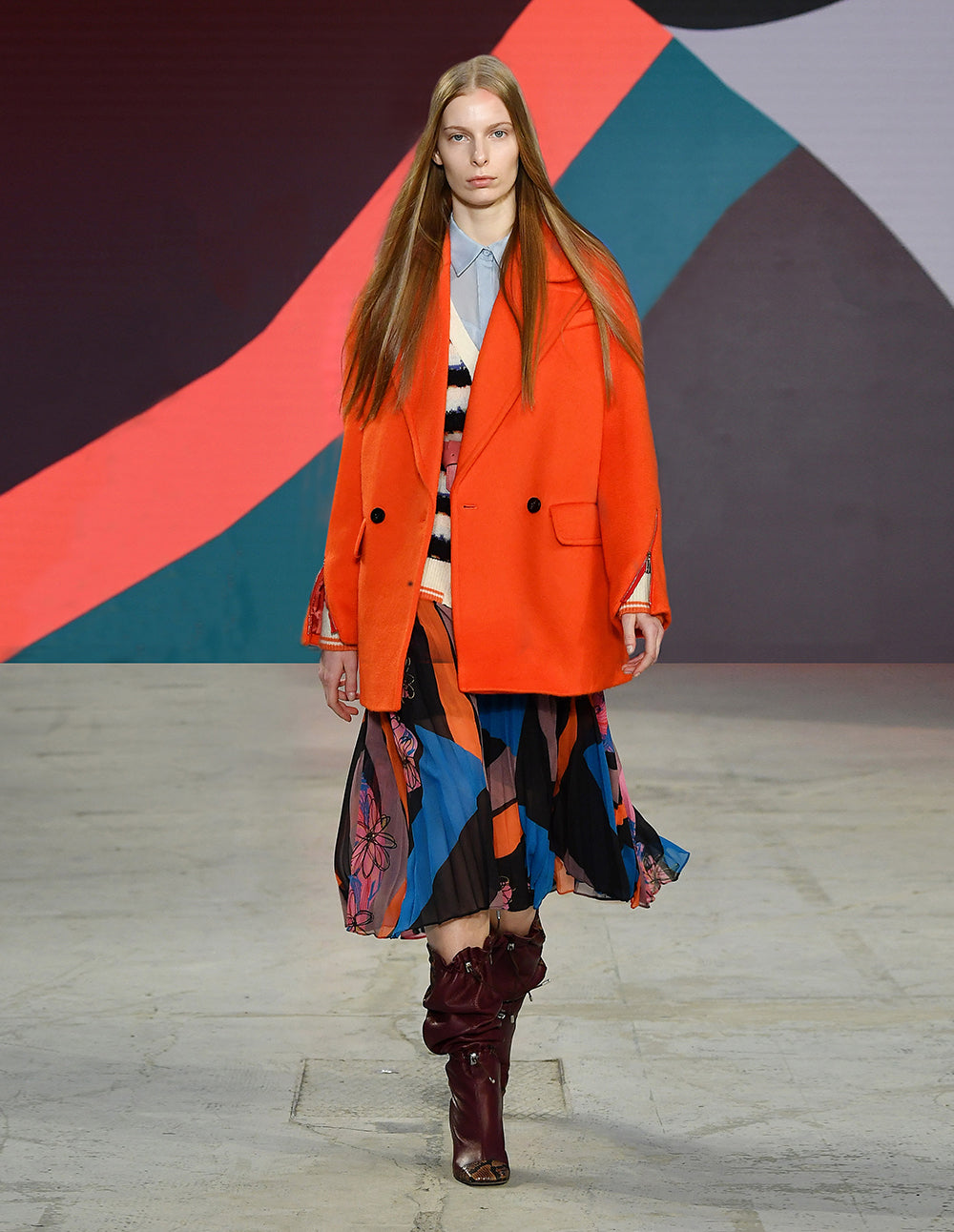 This classic double-breasted coat is cut in a slightly oversized silhouette, featuring a notch lapel and zipper-detailing on the sleeves. It elegantly balances feminine charm with a contemporary edge. Vivid Orange Red offers an eye-catching pop of color, lifting the spirits of autumn and winter. The mohair-blend fabric is soft to the touch with a delicate plush feel, ensuring skin-friendly comfort. The zipper cuffs add a stylish and ingenious detail. The cut is forgiving and comfortable to wear.