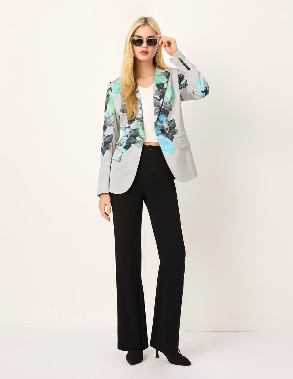 MARYLING Peaked Lapel Oil Painting Print Single-Button Long-Sleeve Blazer