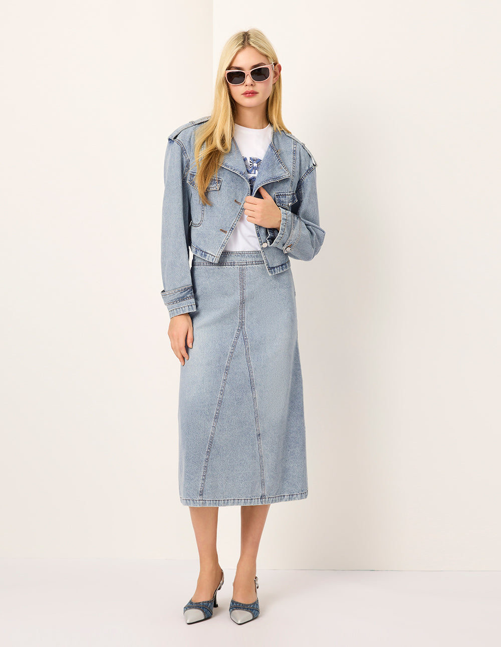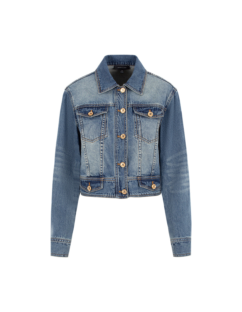 MARYLING Blue Denim Long-Sleeve Cropped Jacket