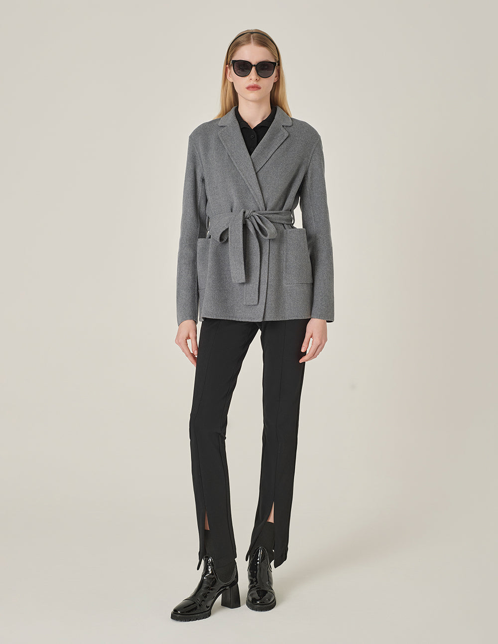 MARYLING Notched Lapel Wrap Belted Double-Faced Wool Coat