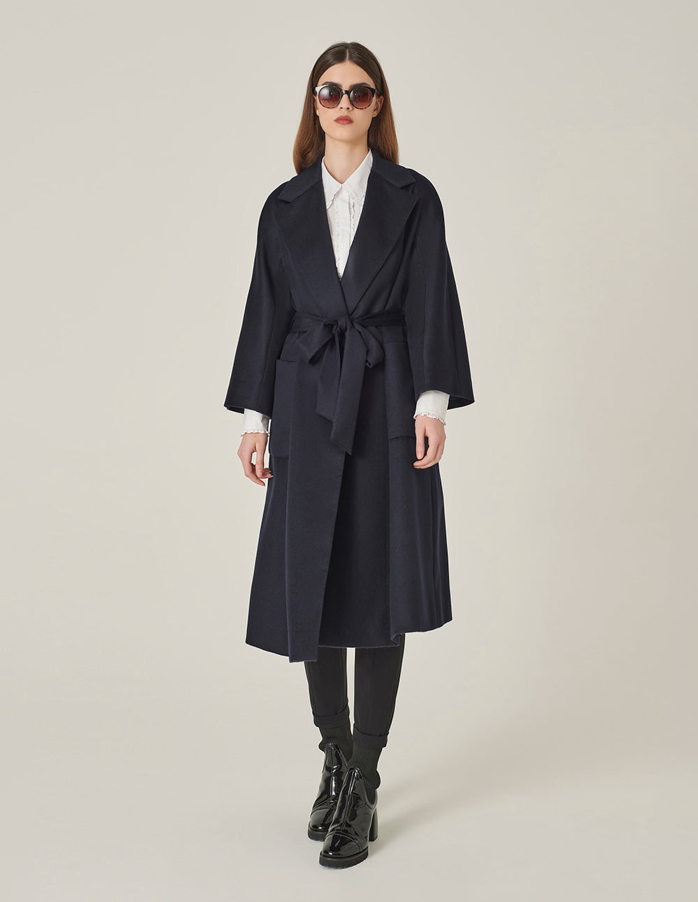 MARYLING Lapel Wrap A-Line Silhouette Silk-Cashmere Coat