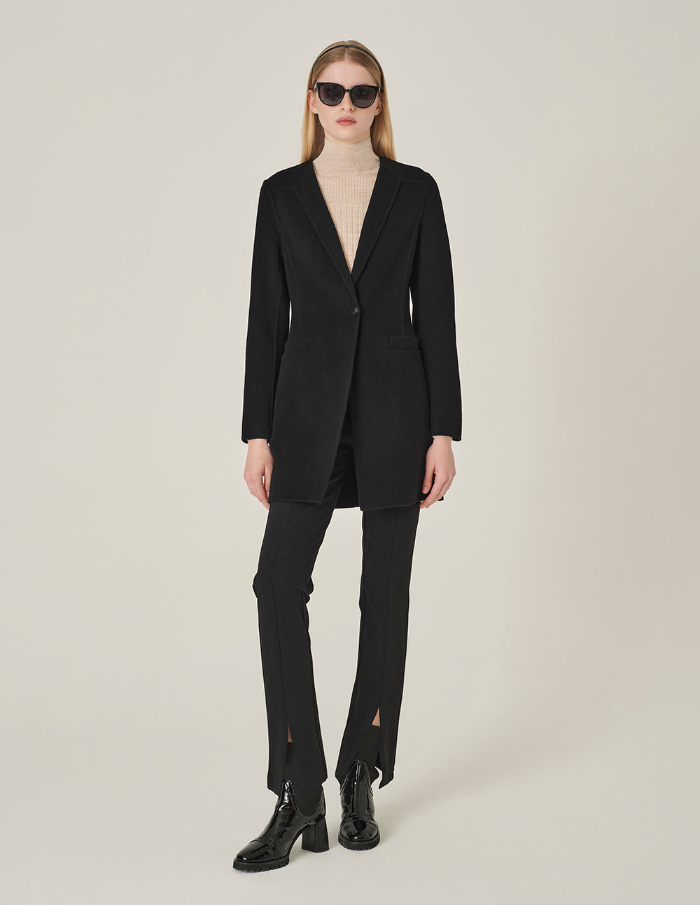 MARYLING Black V-Neck Single-Breasted Silk-Wool Coat
