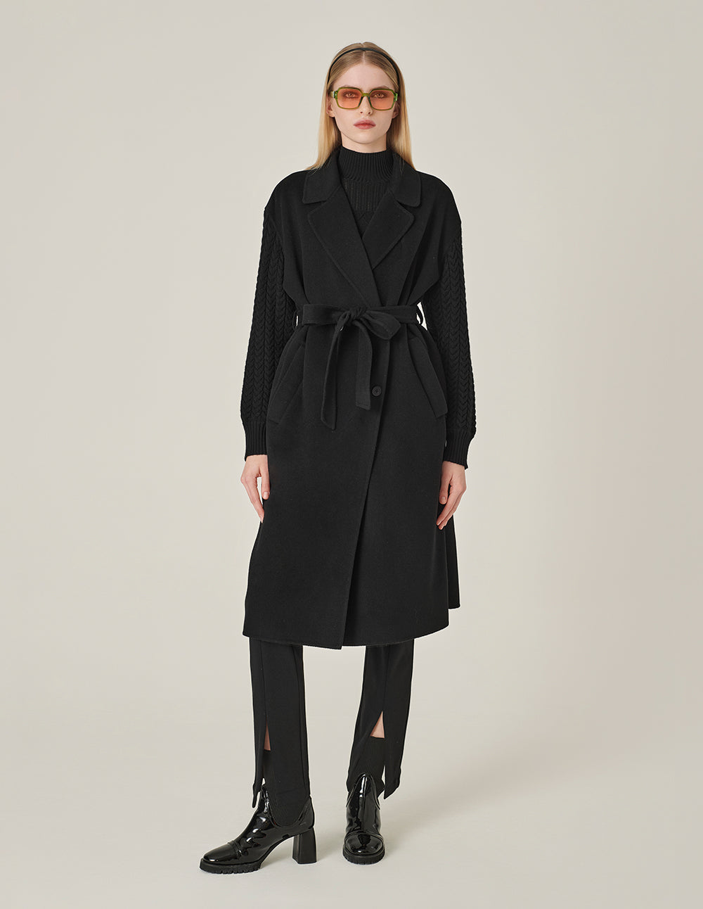 MARYLING Wrap Double-Sided Wool & Knitted Long Coat