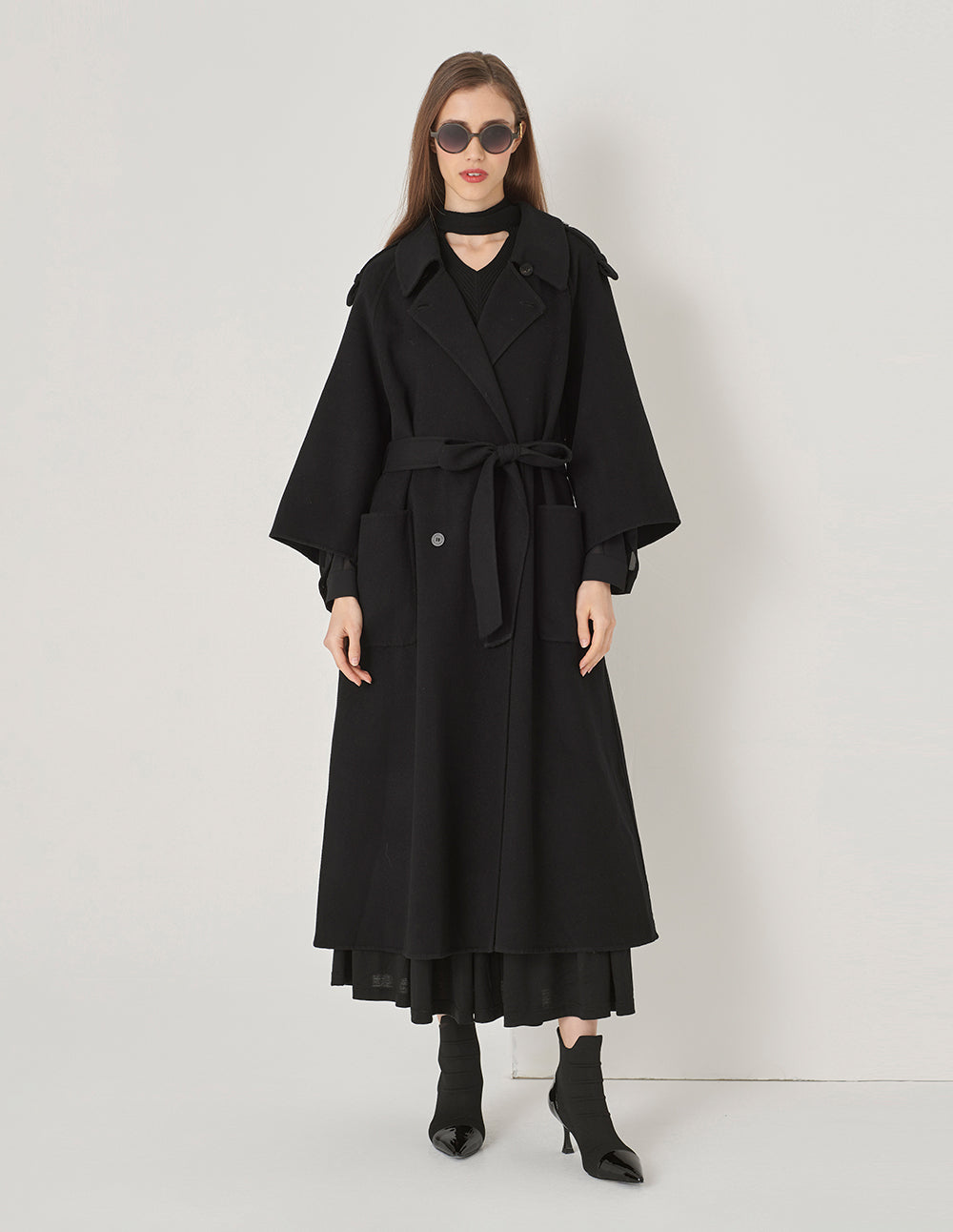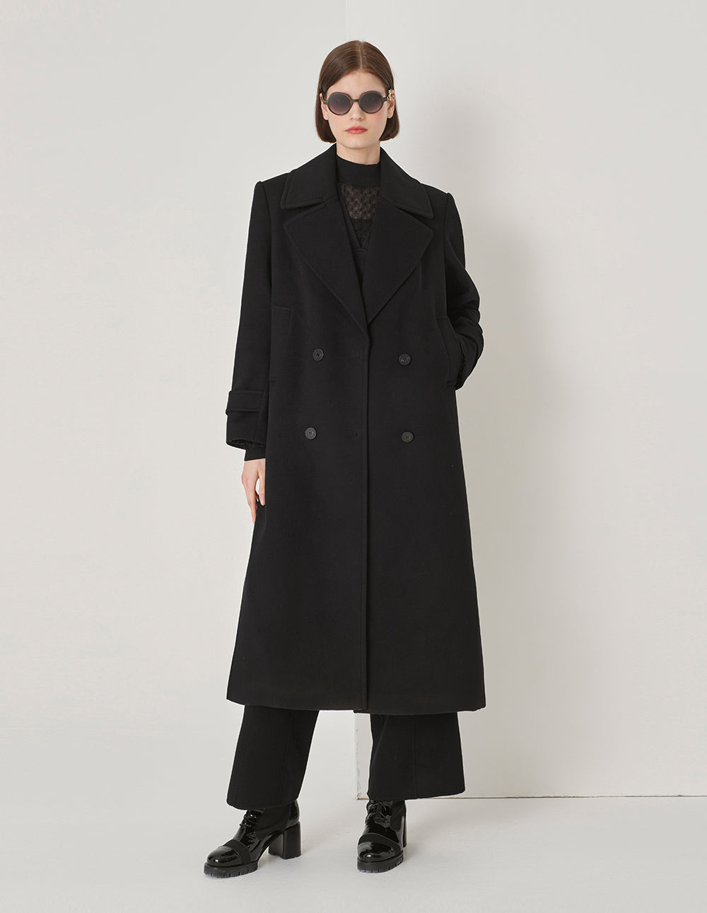 MARYLING Black Double-Sided Woolen Long Coat