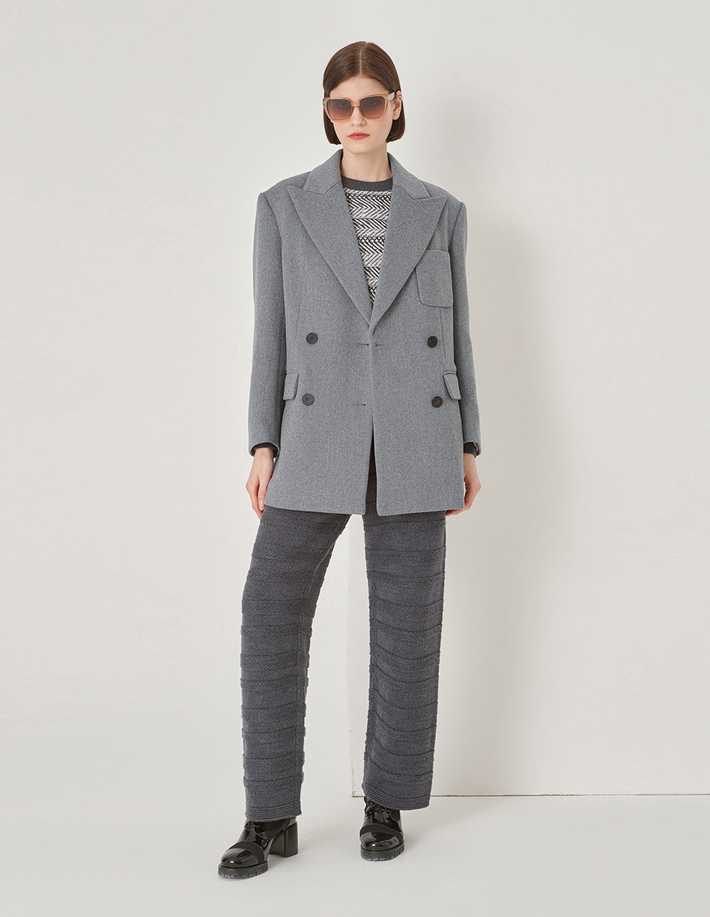 MARYLING Grey Suit-Style Double-Breasted Short Coat