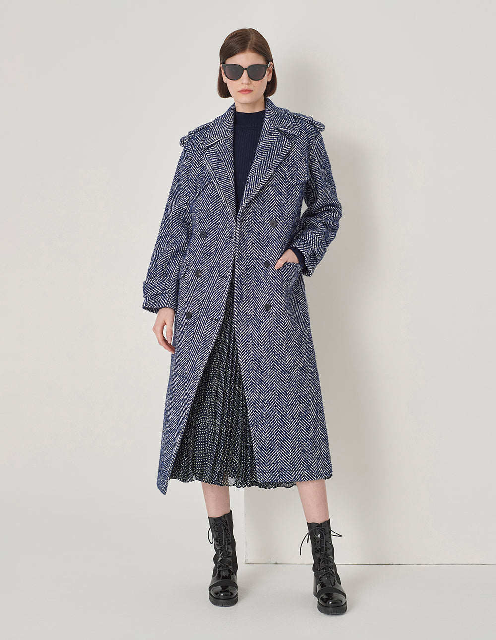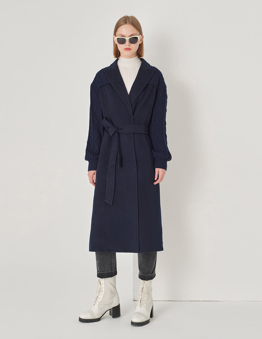 MARYLING Dark Blue Double-Sided Wool And Knitted Long Coat