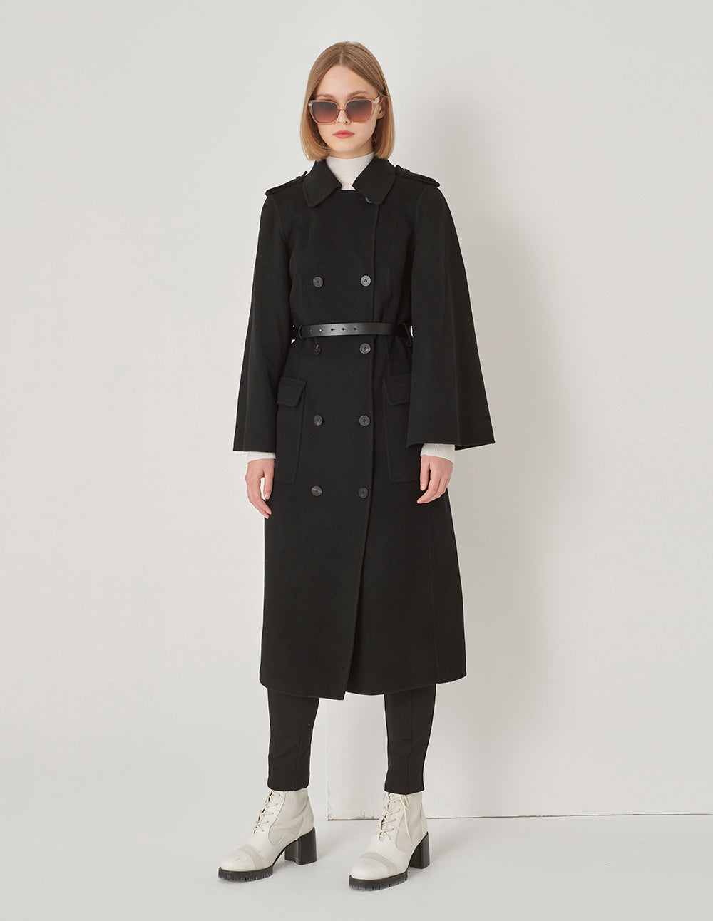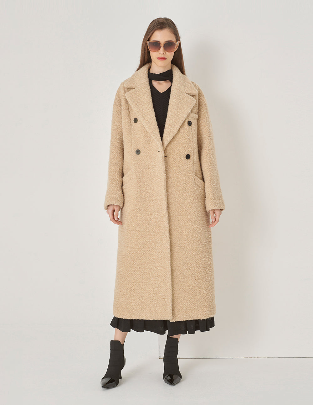 MARYLING Wide-Shouldered Double-Breasted Long Coat