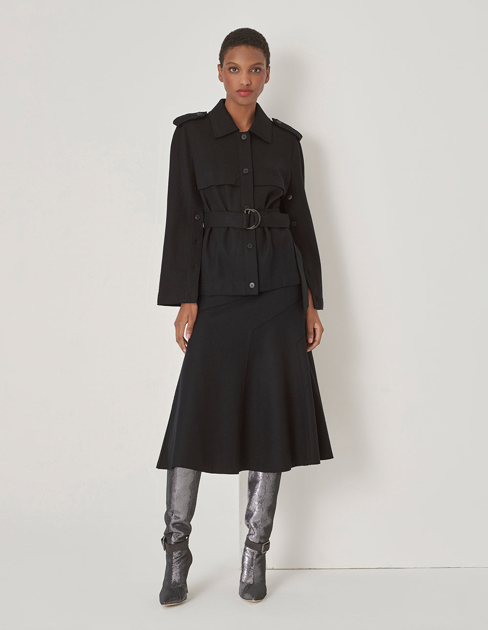 MARYLING Black Button-Sleeve Detail Belted Jacket