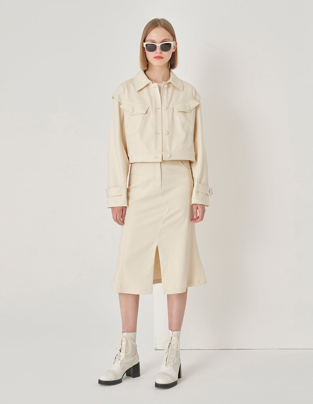 MARYLING White Slanted Pocket Cropped Jacket