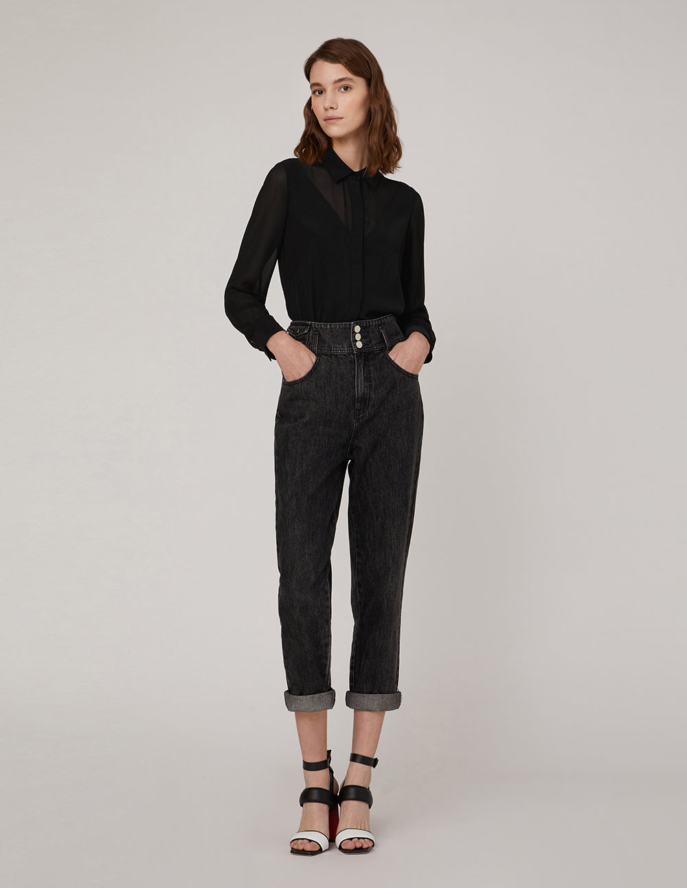 A soft lead‑gray wash gives these jeans a vintage‑inspired yet modern appeal. The high‑waist cut enhances proportions, while a gently relaxed leg balances smart style with day‑long comfort.