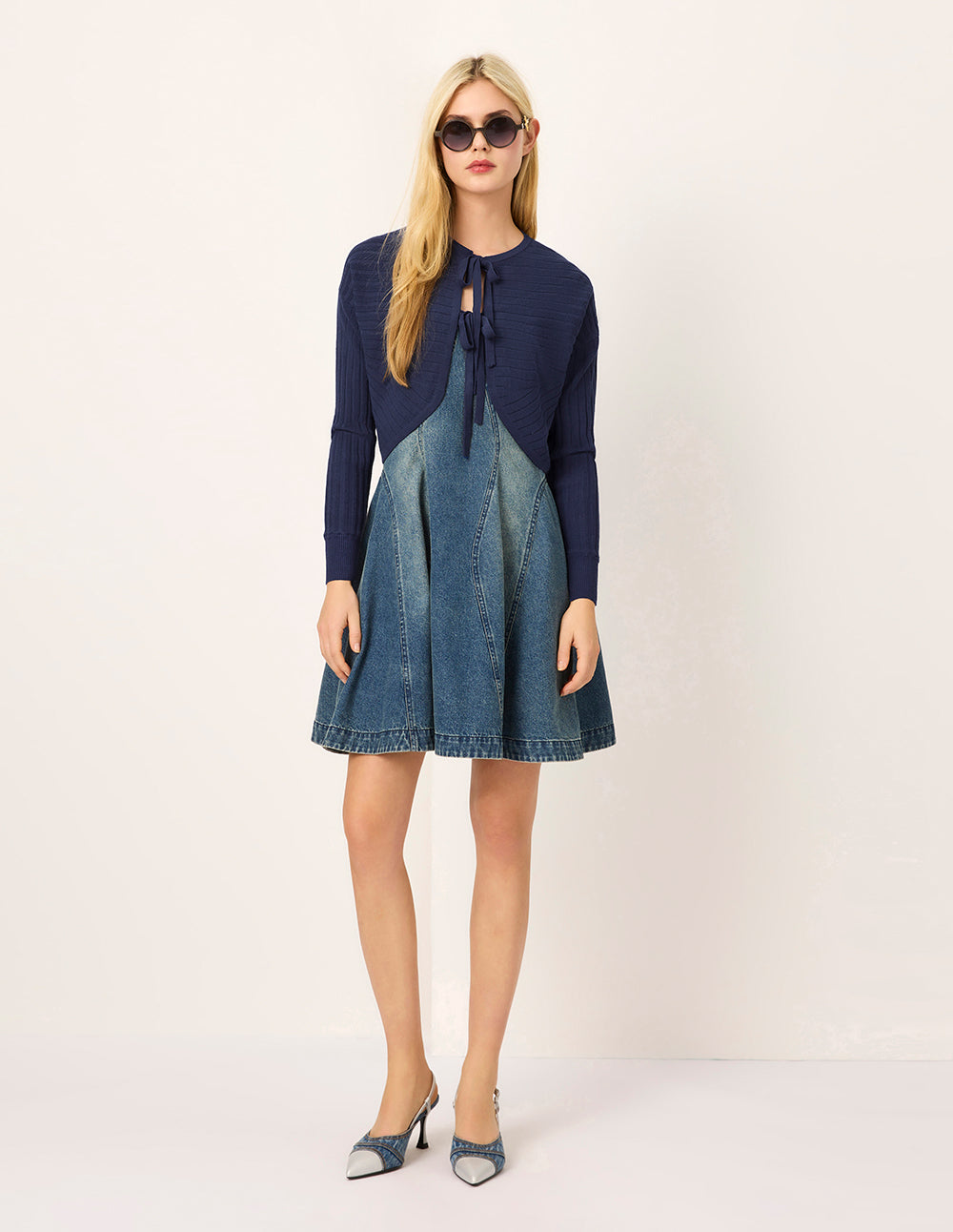MARYLING's knitted cardigan reimagines a blouse silhouette with a simplified placket—free of buttons or zippers—outlined with soft arc lines and ribbed texture for a gentle, feminine feel. A neckline tie adds adjustable charm and versatility to the look.