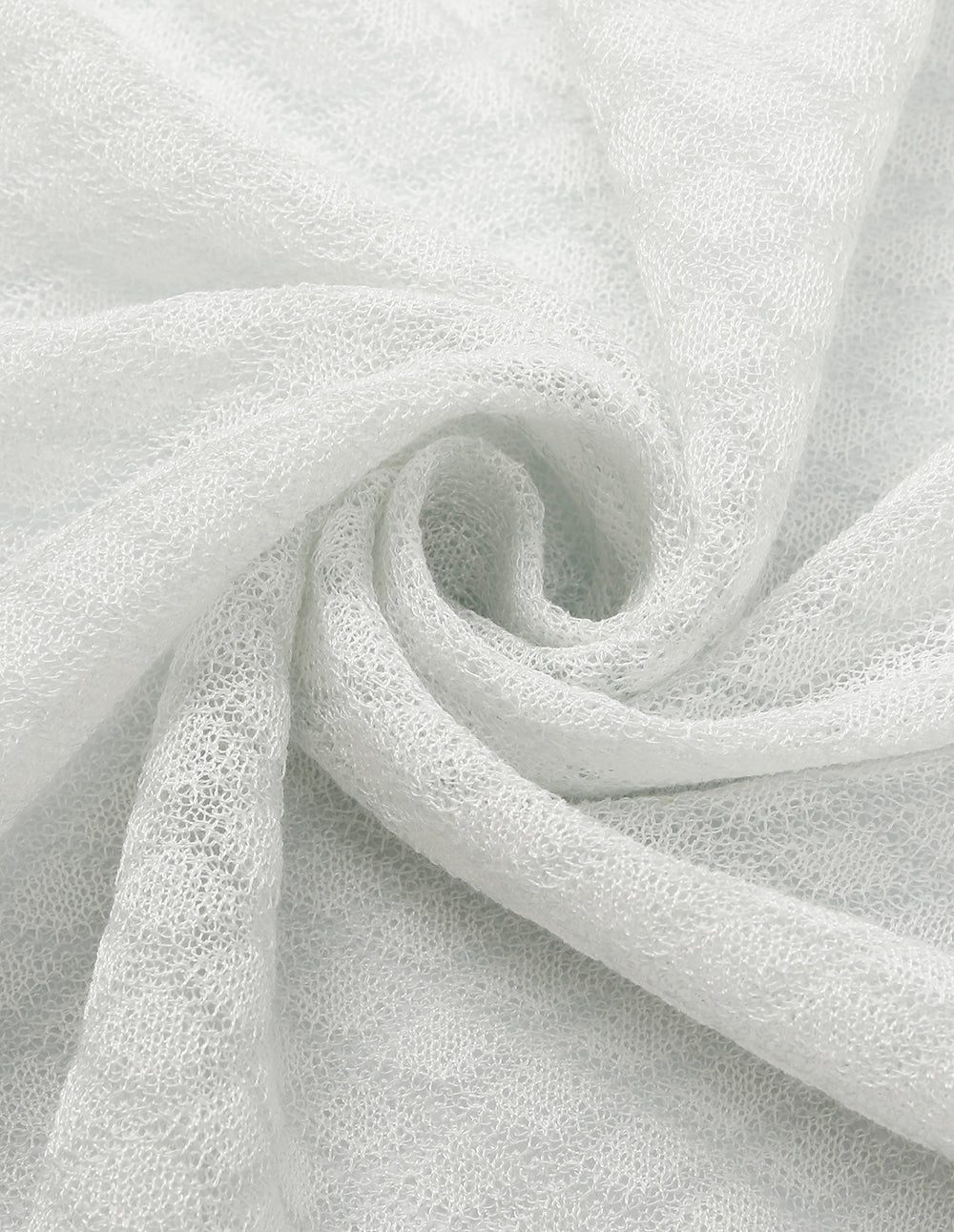 The layered lapel forms a refined V‑neck, outlined with white stitching that defines the geometric border between collar and placket. The light green body evokes new leaves in early summer, while an openwork texture hints at skin beneath, balancing breathability with a soft, hazy allure.