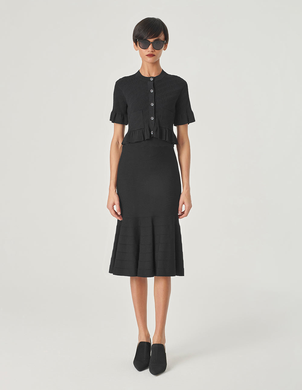 MARYLING Crew-Neck Ruffle Long-Sleeve Cropped Knit Cardigan