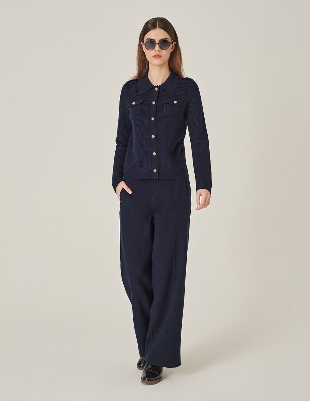 MARYLING Shirt Collar Long Sleeve Knitted Cardigan