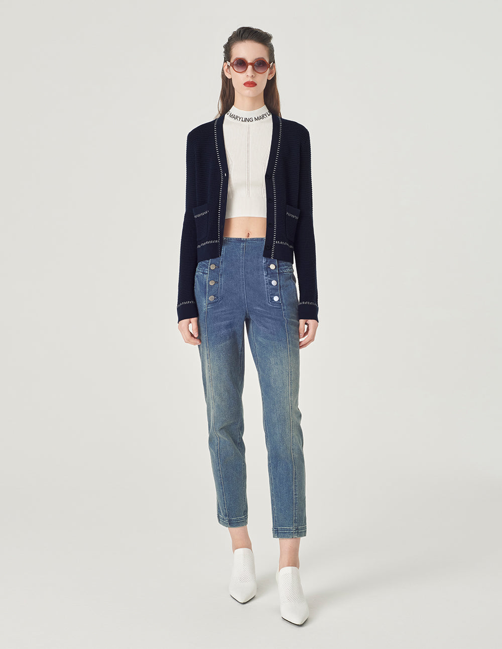 MARYLING Off-White Crewneck Knit Cardigan