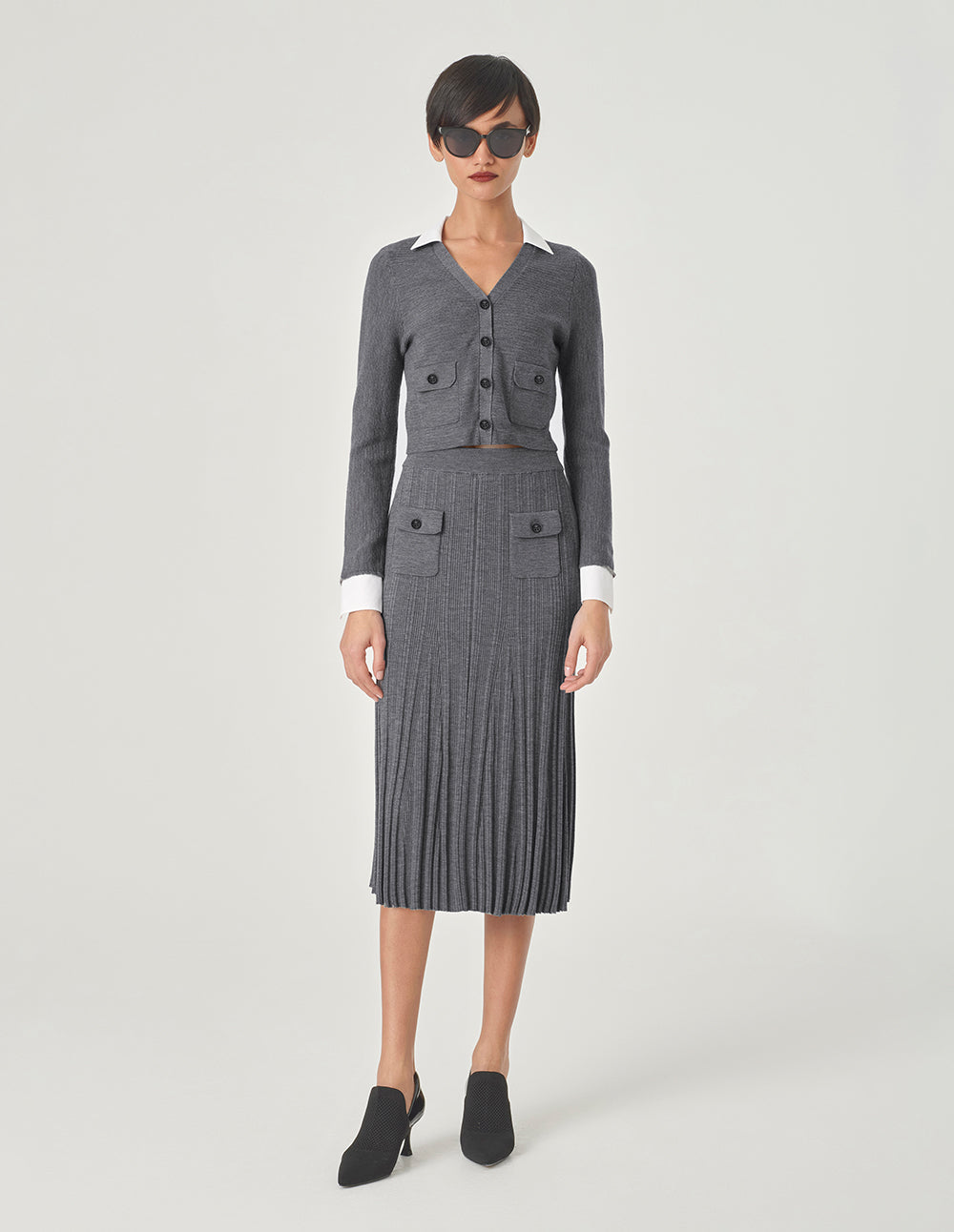 MARYLING Gray And White Contrast Needle Shuttle With Short Cardigan