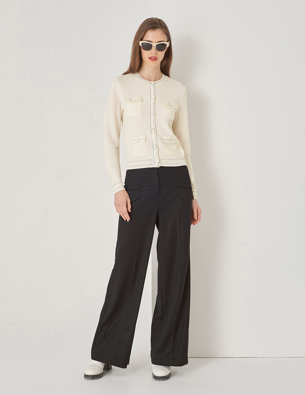 MARYLING White Contrast Pocket Knitted Cardigan