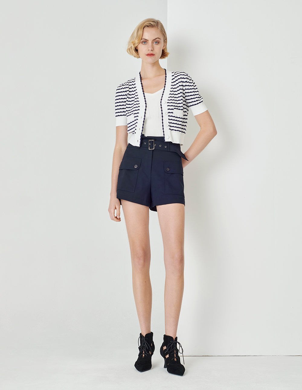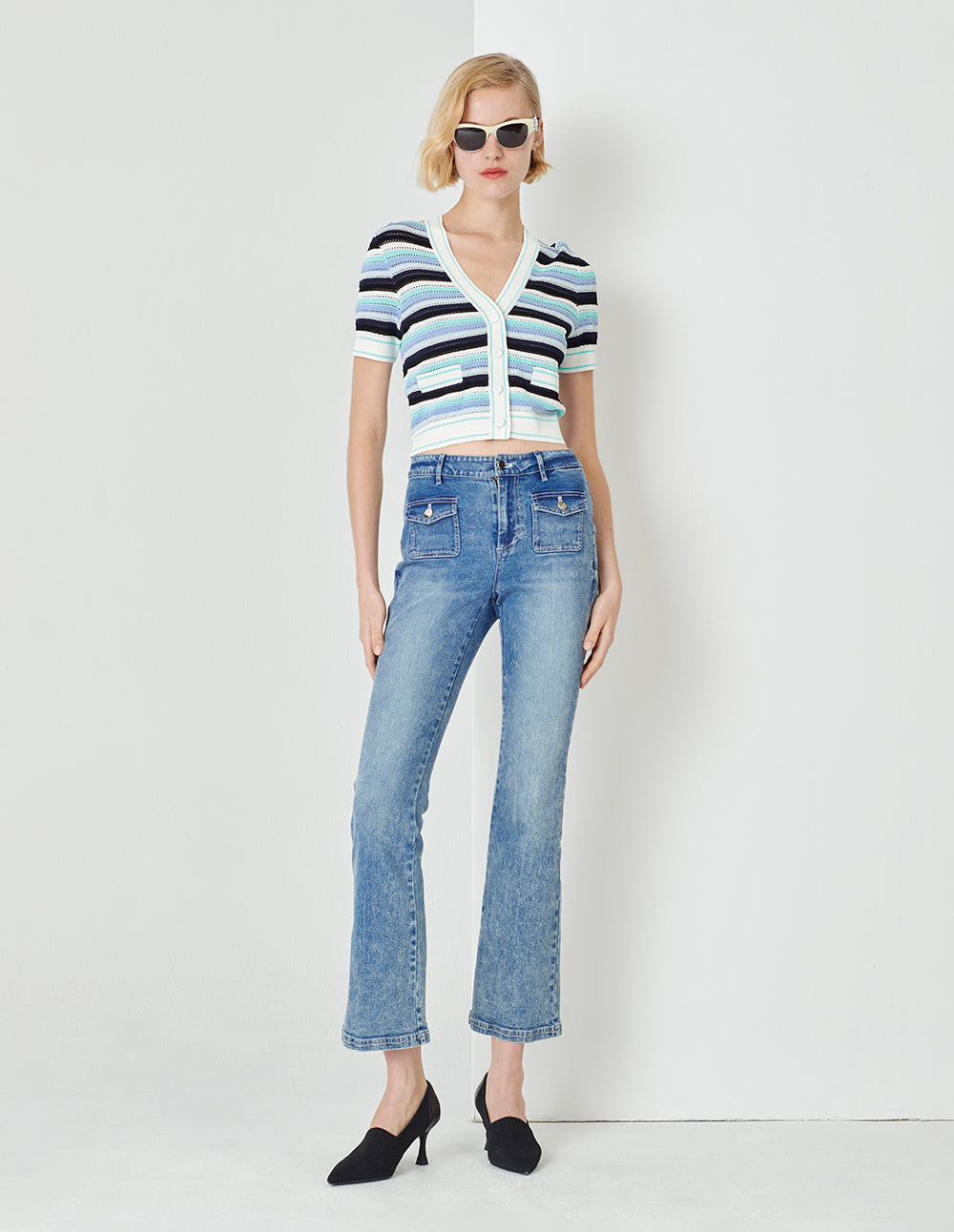 MARYLING V-Neck Striped Cropped Cardigan
