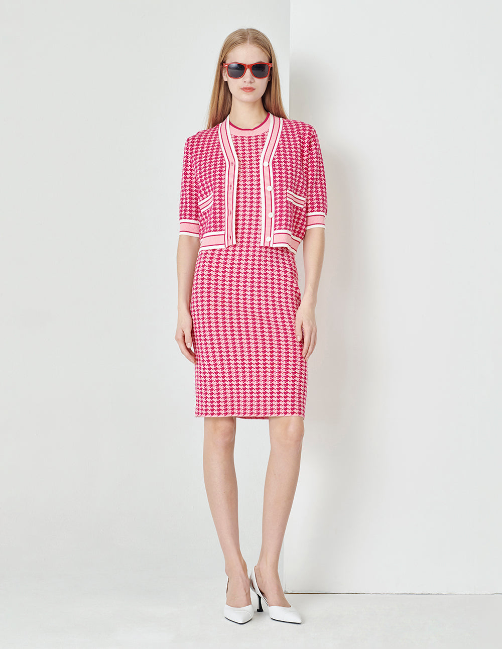 MARYLING Berry Check Jacquard Cardigan