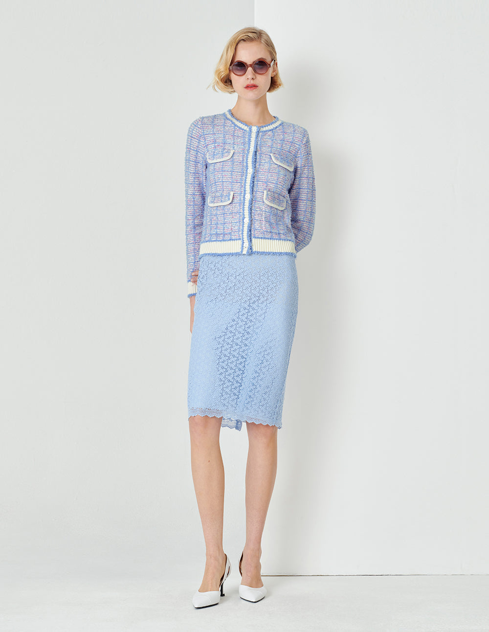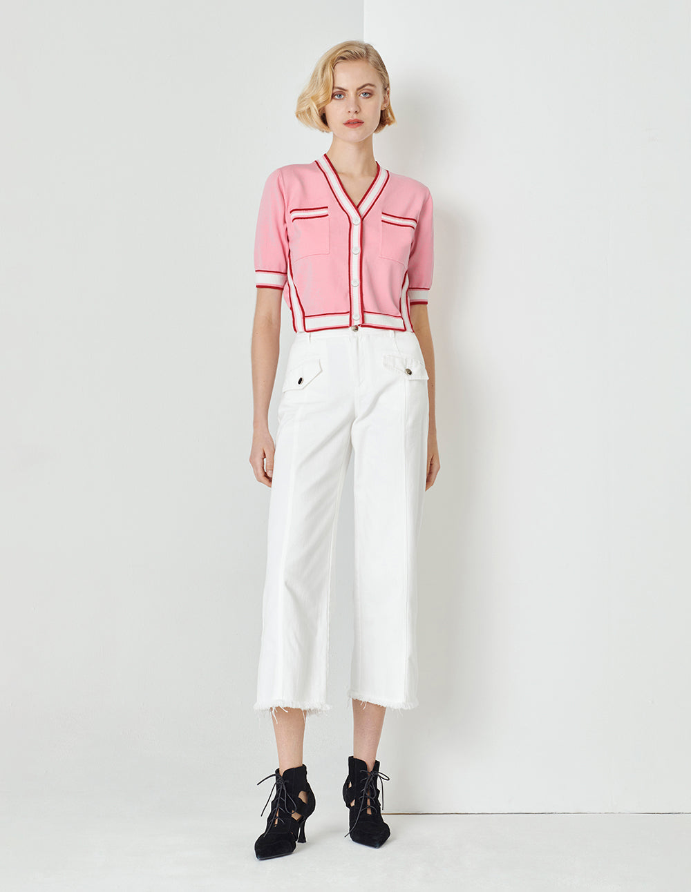 MARYLING Classic small cardigan has contrasting wavy edges