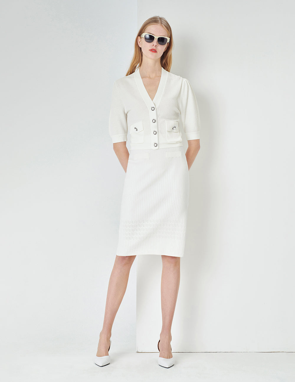 MARYLING White V-Neck Knitted Cardigan