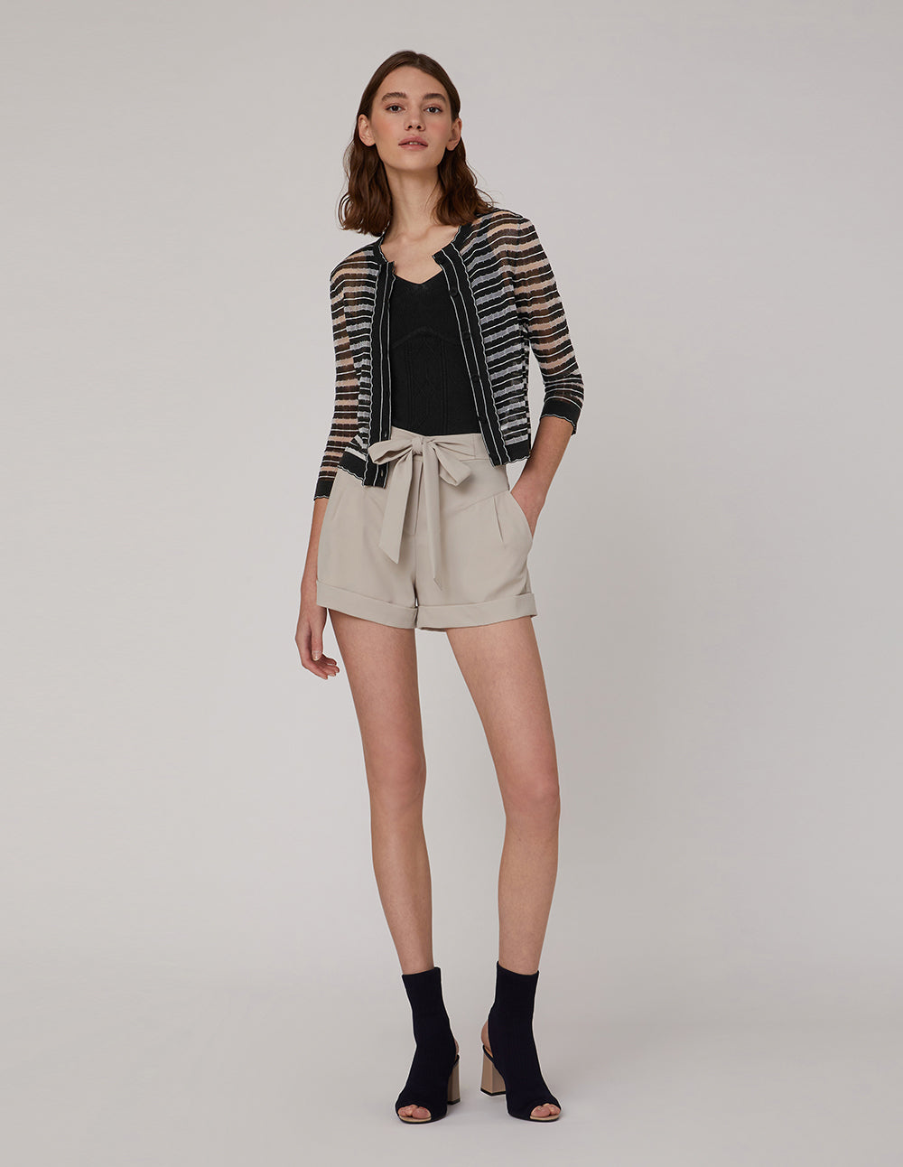 MARYLING Black And White Striped V-Neck Knitted Cardigan