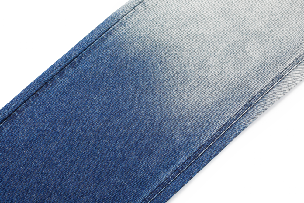 Washed denim fabric creates layered color effects, accentuating the leg line for a more dimensional silhouette when worn